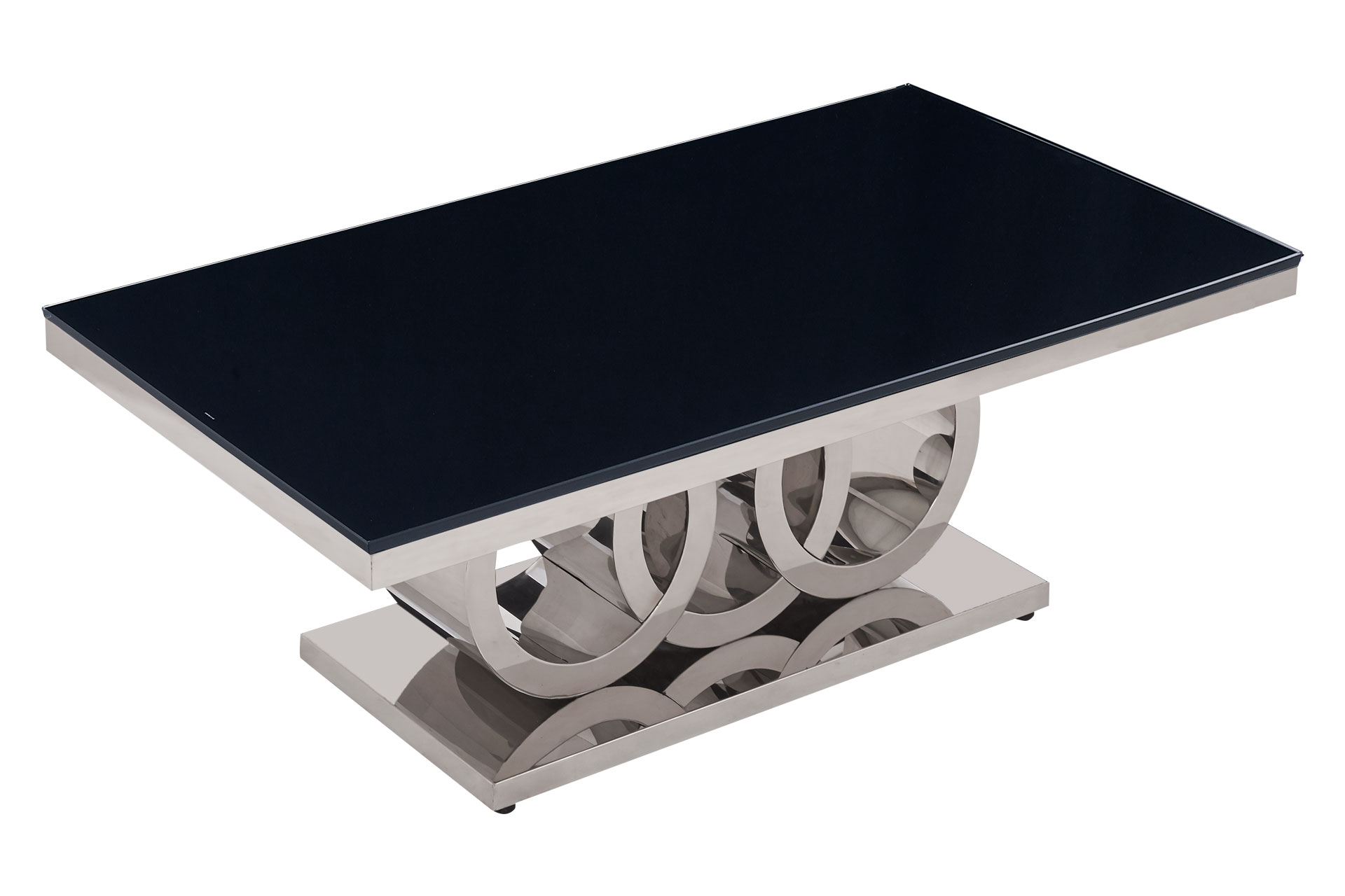 Bold and elegant, this coffee table stands out with its glossy black glass top and sculptural silver base. Its luxurious design is perfect for contemporary settings that crave a touch of glam. Durable materials ensure long-lasting beauty and performance.