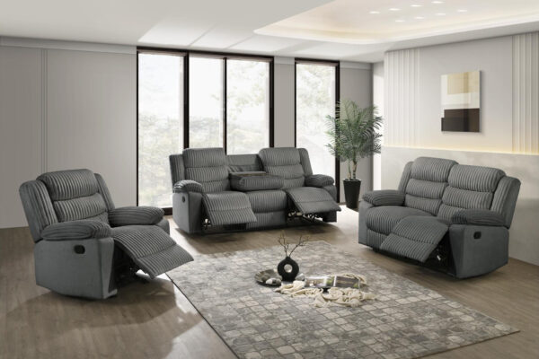 Unwind in ultimate comfort with this luxurious velvet corduroy fabric manual recliner set. Designed for relaxation, this set features soft corduroy-textured fabric, generously padded cushions, and smooth reclining functionality. The loveseat includes a convenient drop-down tray with cup holders, making it perfect for movie nights or lounging in style.