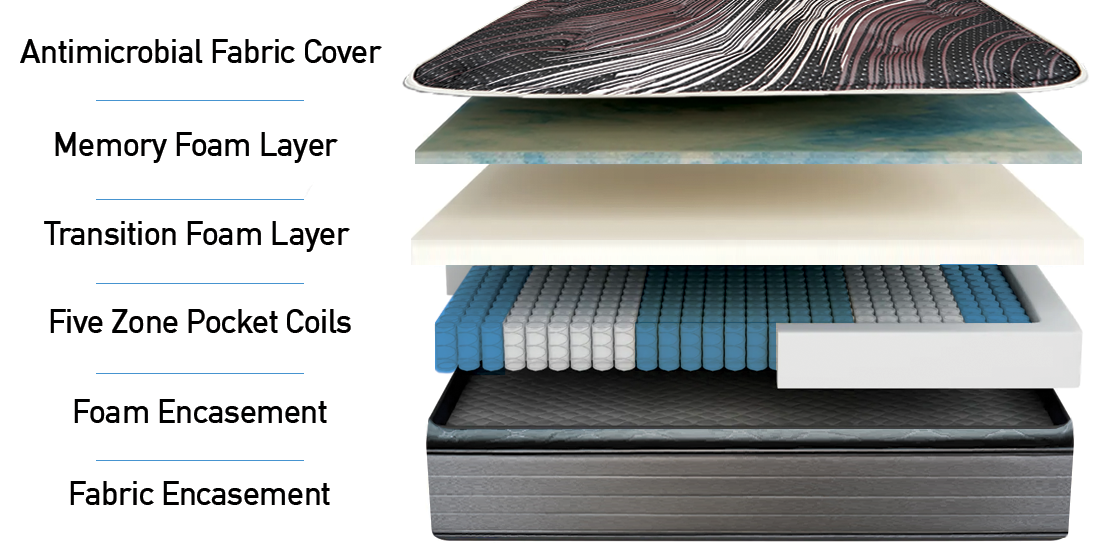 If you’re looking for an ultra soft pocket coil mattress, the Valencia was made for you. It features a quilted top with silk and wool infused cloth, a jumbo pillow top, followed by a specially designed pressure relief foam layer. All on top of industry leading five zone pocket coils in a foam encasement.